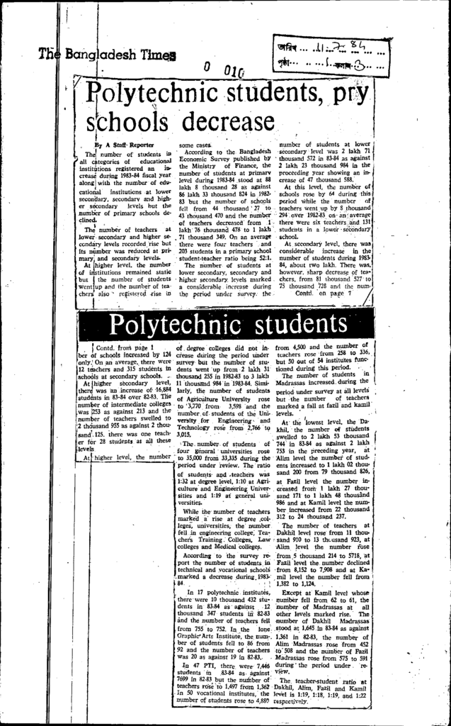 Polytechnic students, pry schools decrease Published on Newspaper The Bangladesh Times Category Technical and Vocational Education Download