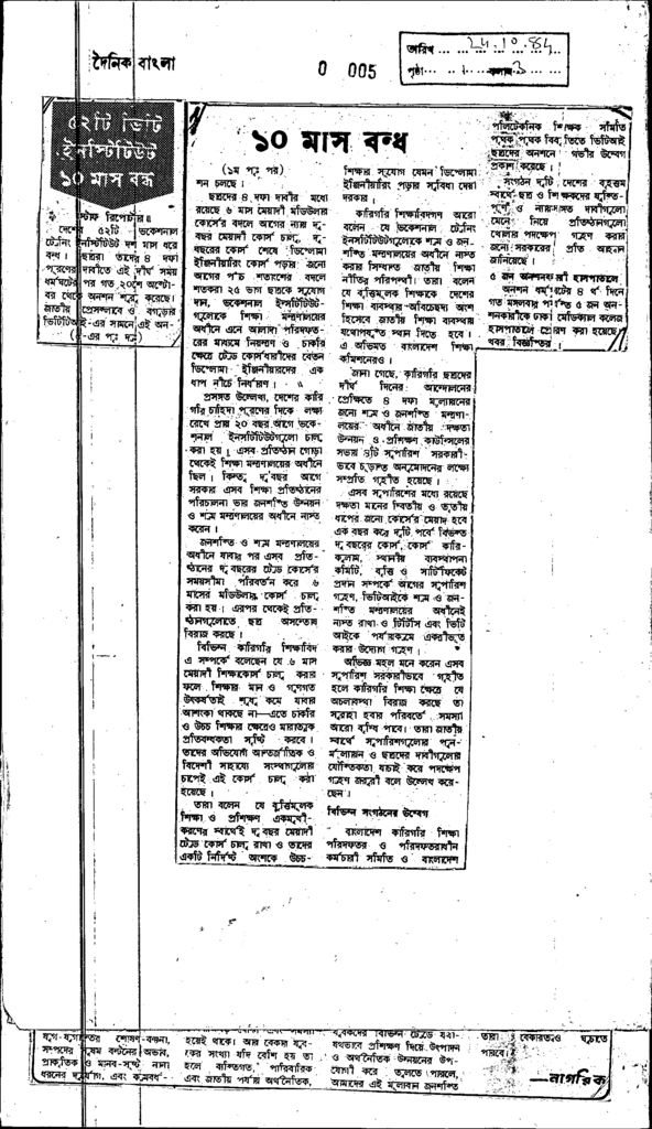 ৫২টি ভিটা ইনস্টিটিউট ১০মাস বন্ধ