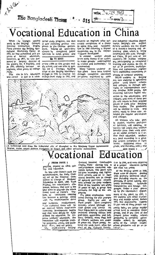 Vocaftional education in china Published on Newspaper The Bangladesh Times Category Technical and Vocational Education Download