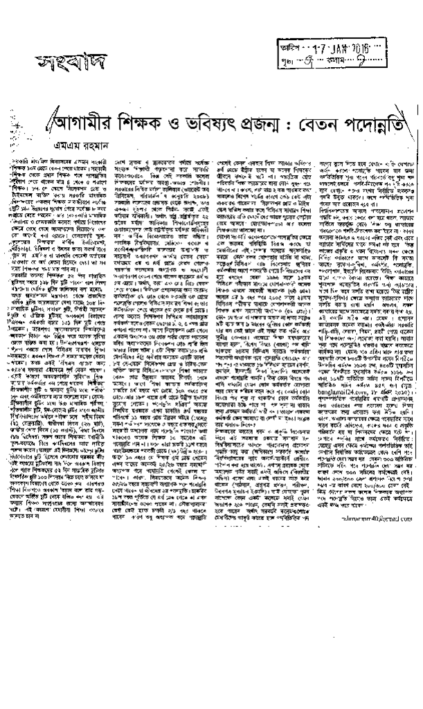 আগামীর শিক্ষক ও ভবিষ্যৎ প্রজন্ম : বেতন পদোন্নতি Published on Newspaper দৈনিক সংবাদ Category Personal Opinion / Discussion / Commentary Personal Speech / Discussion / Comentary Secondary and Higher Secondary Education Download