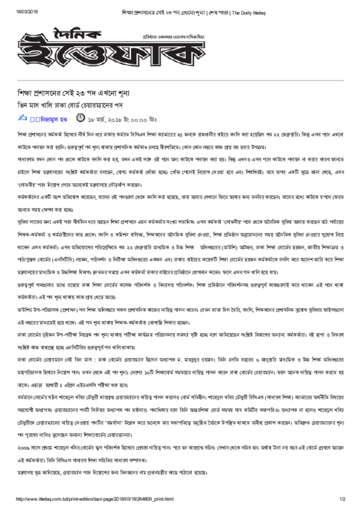শিক্ষা প্রশাসনের সেই ২৩ পদ এখনো শূন্য _ শেষ পাতা _ The Daily Ittefaq Published on Newspaper দৈনিক ইত্তেফাক Category Educational Ministry / Departments directorate Other Education Ministry / Division / Directorate Download
