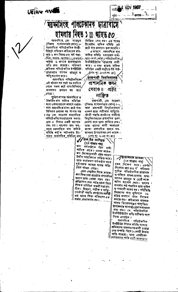 ময়মনসিংহ পলিটেকনিক ছাত্রাবাসে হামলায় নিহত ১’ আহত ৫০ Published on Newspaper দৈনিক বাংলা Category Technical and Vocational Education Download