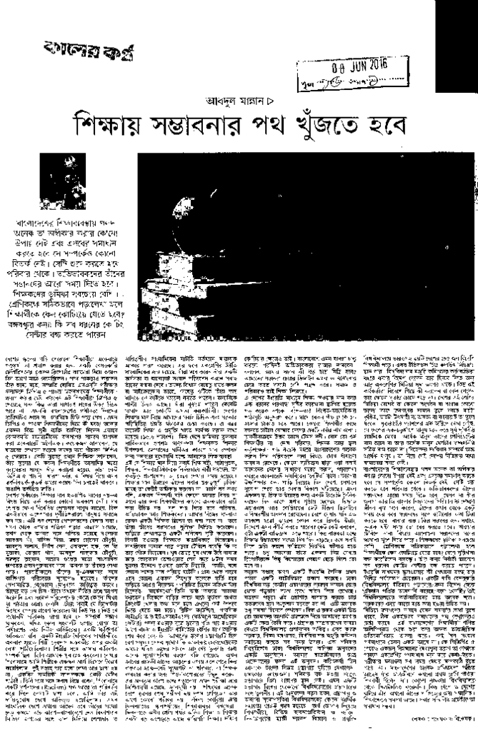 শিক্ষায় সম্ভাবনার পথ খুঁজতে হবে Published on Newspaper দৈনিক কালের কন্ঠ Category Personal Opinion / Discussion / Commentary Download