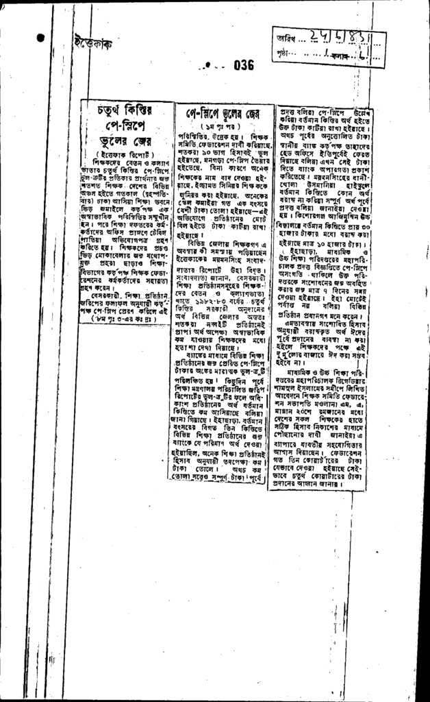 চতুর্থ কিস্তির পে-স্লিপে ভুলের জের