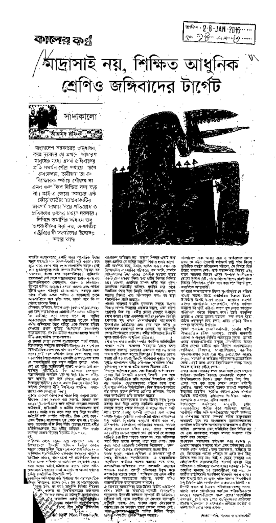 মাদ্রাসাই নয়, শিক্ষিত আধুনিক শ্রেণিও জঙ্গিাবদের টার্গেট Published on Newspaper দৈনিক কালের কন্ঠ Category Personal Opinion / Discussion / Commentary Download