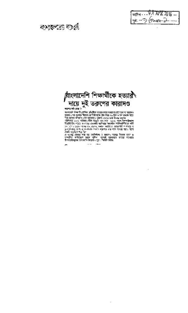 বাংলাদেশি শিক্ষার্থীকে হত্যার দায়ে দুই তরুণের কারাদণ্ড Published on Newspaper দৈনিক কালের কন্ঠ Category Campus Terrorism Download