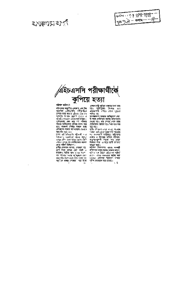 এইচএসসি পরীক্ষার্থীকে কুপিয়ে হত্যা