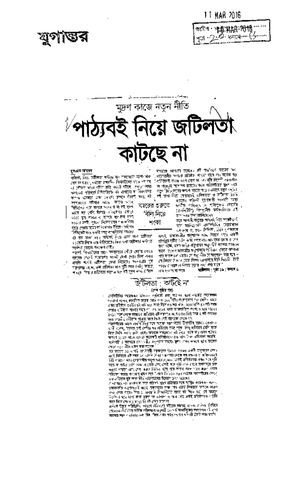 পাট্যবই নিয়ে জটিলতা কাটছে না Published on Newspaper দৈনিক যুগান্তর Category Educational Ministry / Departments Education Board NCTB Education Ministry / Division / Directorate Download