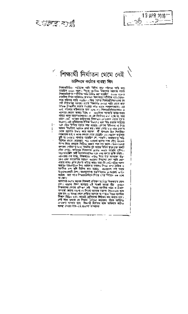 শিক্ষার্থী নির্যাতন থেমে নেই Published on Newspaper দৈনিক কালের কন্ঠ Category Personal Opinion / Discussion / Commentary Download