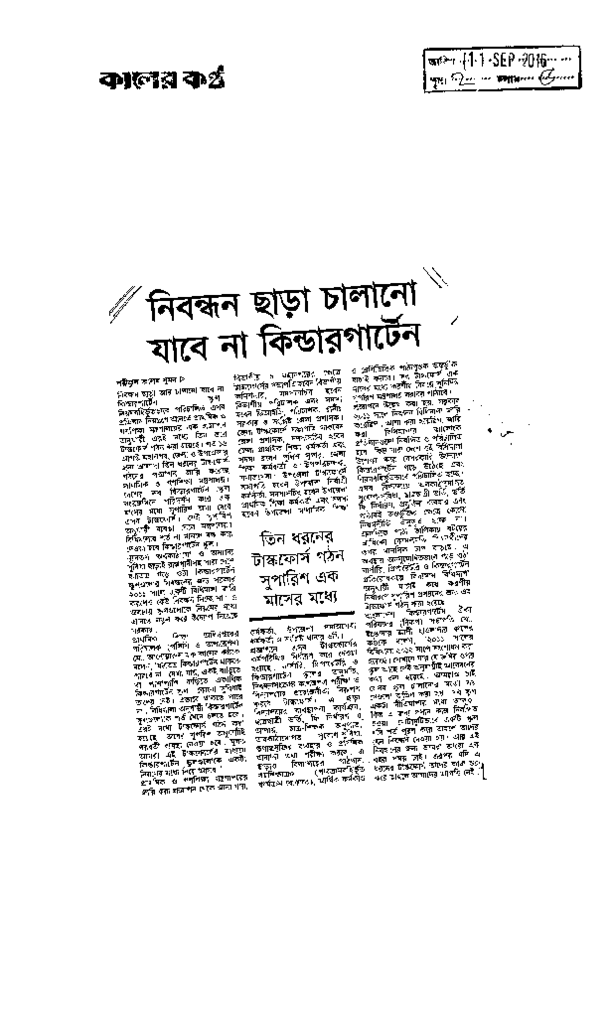 নিবন্ধন ছাড়া চালানো যাবে না কিন্ডারগার্টেন Published on Newspaper দৈনিক কালের কন্ঠ Category Child Education Download