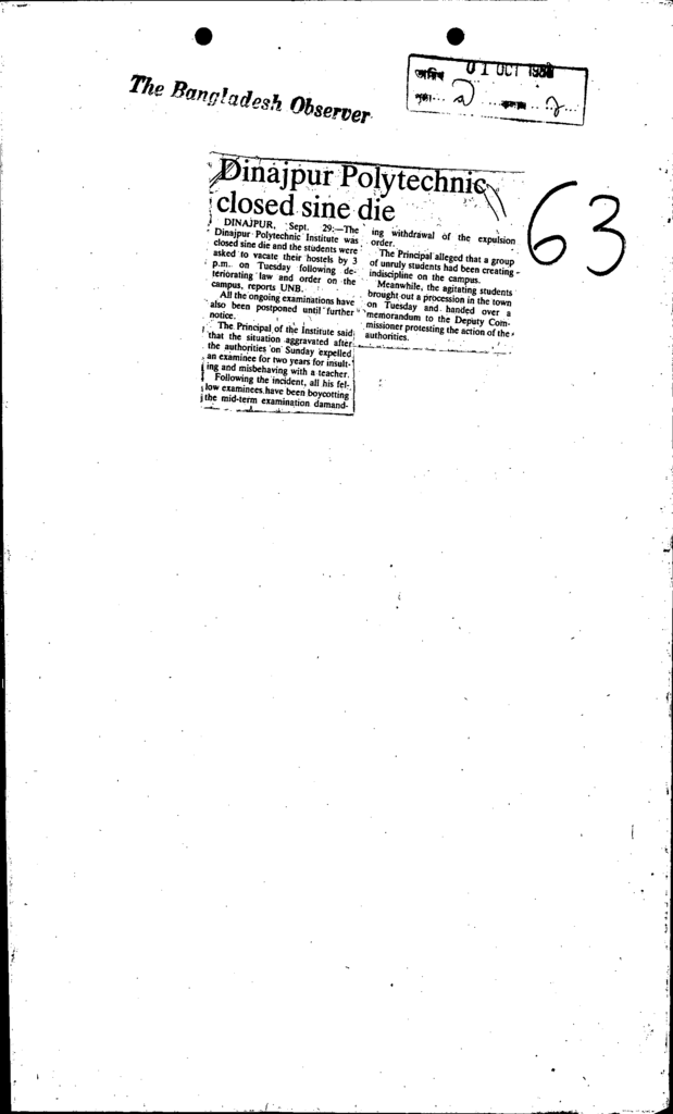 Dinajpur polytechnic closed sine die 63 Published on Newspaper The Bangladesh Observer Category Technical and Vocational Education Download