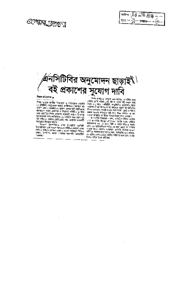 এনিসিটিবির অনুমোদন ছাড়াই বই প্রকাশের সুযোগ দাবি Published on Newspaper দৈনিক প্রথম আলো Category Educational Ministry / Departments Education Board NCTB Education Ministry / Division / Directorate Download