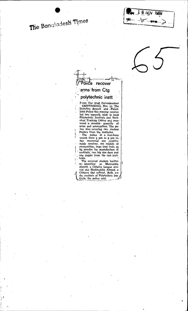 Ponce recover ams from ctg polytechnic 65 Published on Newspaper The Bangladesh Times Category Technical and Vocational Education Download