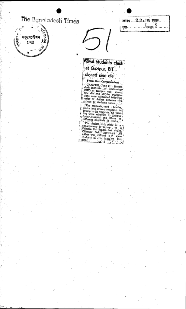 Rival students clash at gazipur bit clowsed sine die Published on Newspaper The Bangladesh Times Category ICT Education Download