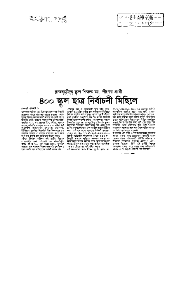 ৪০০ স্কুল ছাত্র নির্বাচনী মিছিলৈ