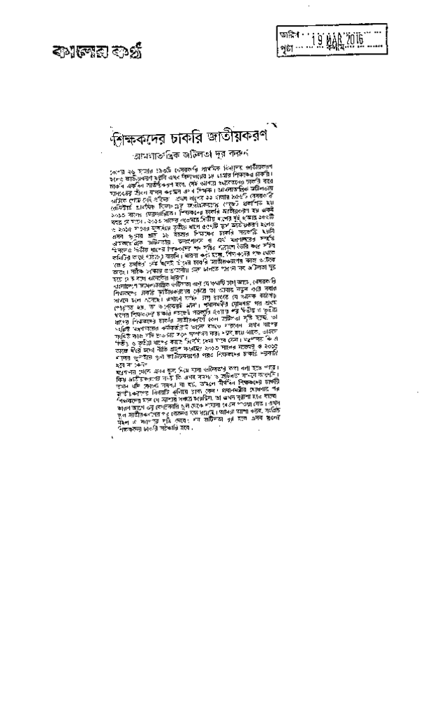 শিক্ষকদের চাকরি জাতীয়করণ Published on Newspaper দৈনিক কালের কন্ঠ Category Personal Opinion / Discussion / Commentary Download