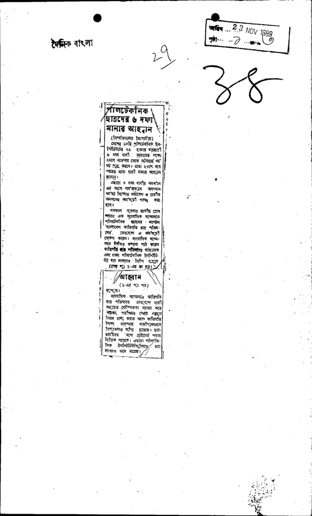 পলিটেকনিক ছাত্রদের ৬ দফা মানার আহব্বান Published on Newspaper দৈনিক বাংলা Category Technical and Vocational Education Download