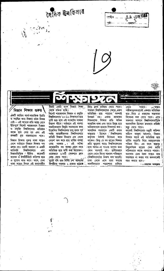শিক্ষাঙ্গন বিজ্ঞান শিক্ষার গুরুত্ব Published on Newspaper দৈনিক ইনকিলাব Category ICT Education Download