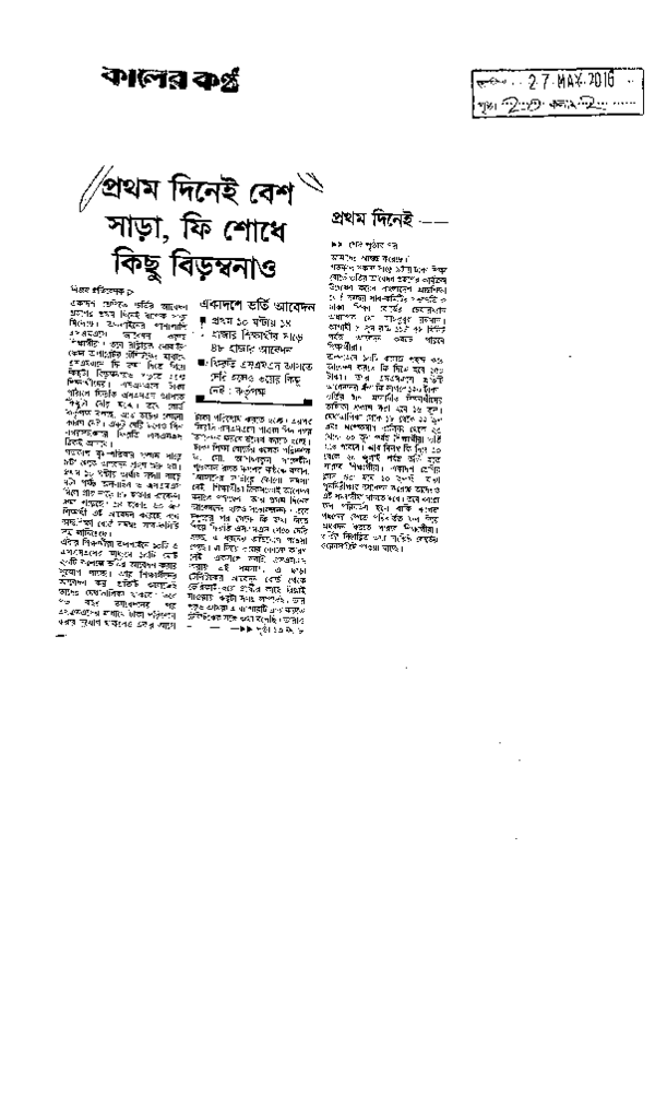 প্রথম দিনেই বেশ সাড়া, ফি শোধে কিছু বিড়ম্বনা Published on Newspaper দৈনিক কালের কন্ঠ Category Admission / Seat Problem Admission/Seat Problem Download