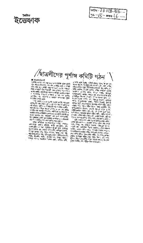 ছাত্রলীগের পূর্ণাঙ্গ কমিটি গঠন