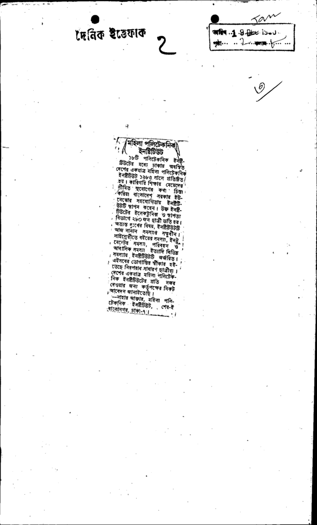 মহিলা পলিটেকনিক ইনষ্টিটিউট Published on Newspaper দৈনিক ইত্তেফাক Category Technical and Vocational Education Download