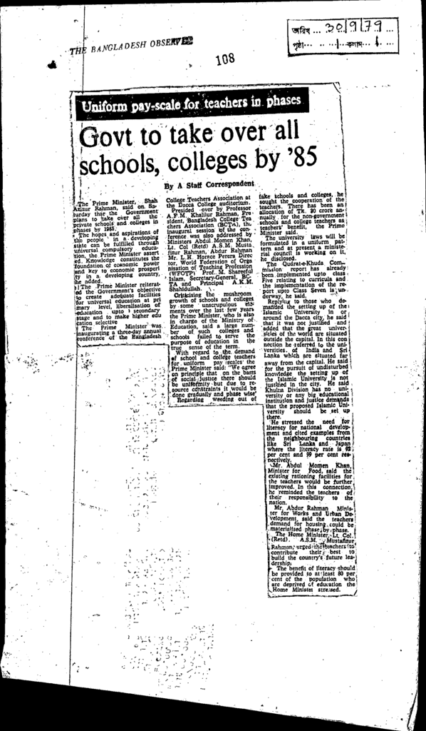 Govt to take over all schools, collegs by ' 85 Published on Newspaper The Bangladesh Observer Category General Education General Education Download