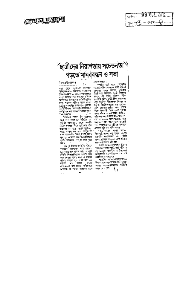 ছাত্রীদের নিরাপত্তায় সচেতনতা গড়তে মানববন্ধন ও সভা