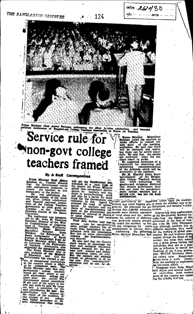 Serice rule for non-govt college teachers framed Published on Newspaper The Bangladesh Observer Category General Education General Education Download