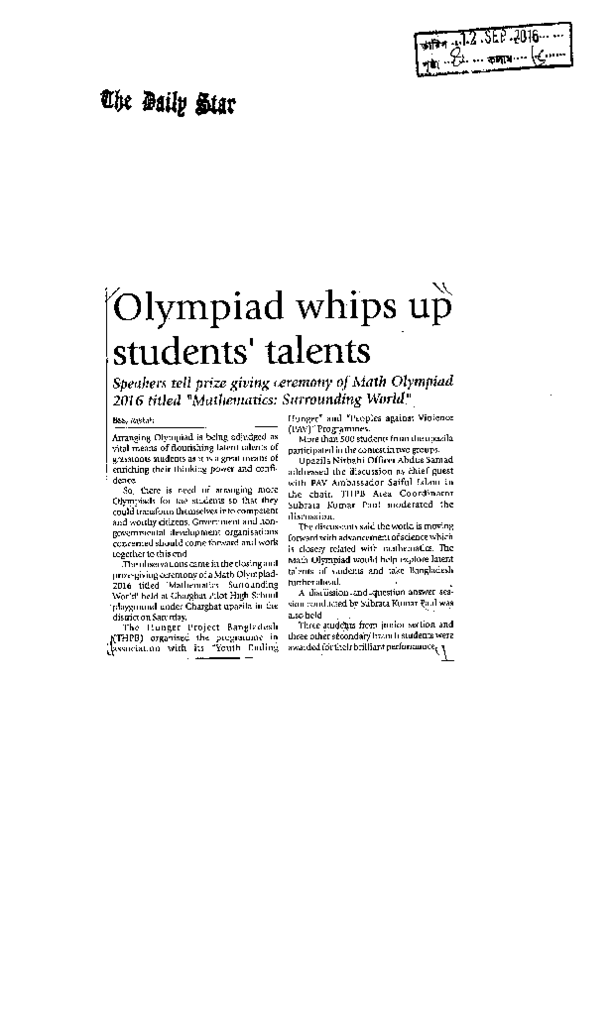 Olympiad whips up students talents Published on Newspaper The Daily Star Category Sports and Culture Download