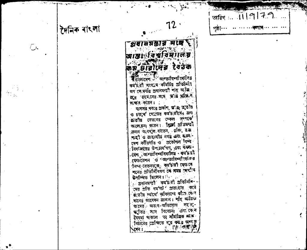 প্রধানমন্ত্রী সঙ্গে আন্ত:বিশ্ববিদ্যালয় কর্মচারীদের বৈঠক Published on Newspaper দৈনিক বাংলা Category General Education General Education Higher Education Public Download