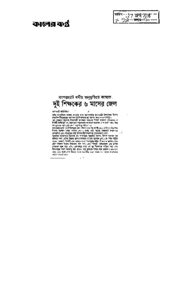 দুই শিক্ষকের ৬ মাসের জেল Published on Newspaper দৈনিক কালের কন্ঠ Category General Education General Education Download