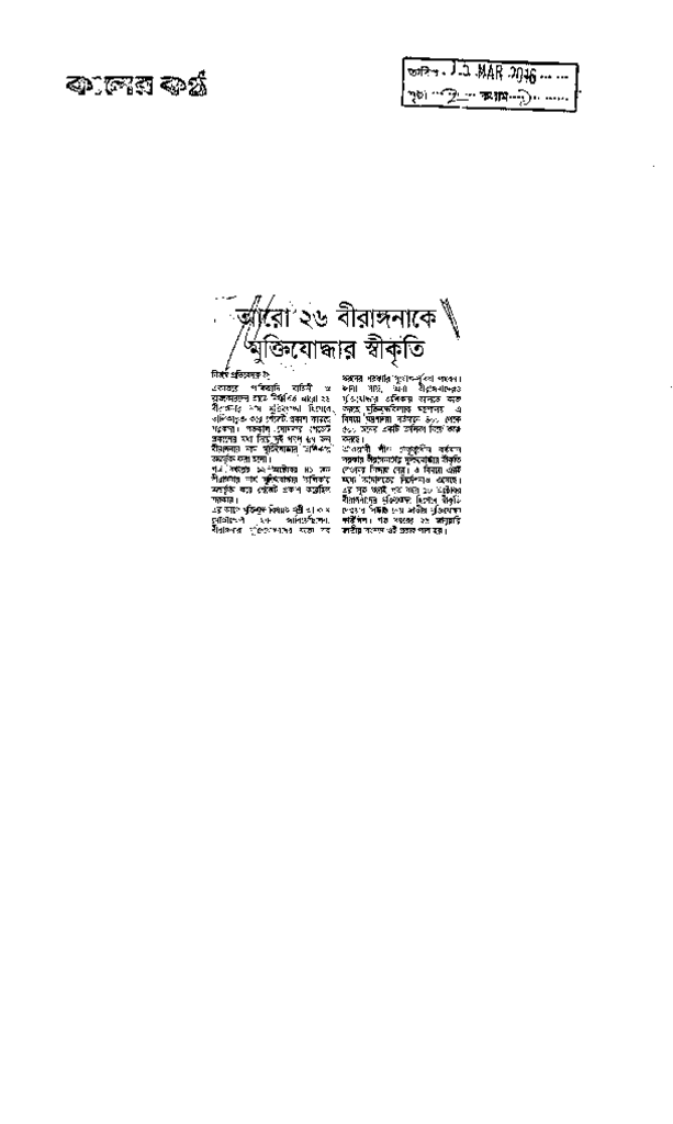 আরো ২৬ বীরাঙ্গনাকে মুক্তিযোদ্ধার স্বীকৃতি Published on Newspaper দৈনিক কালের কন্ঠ Category Others Download