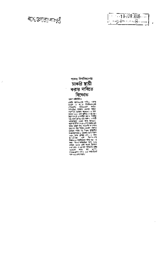 চাকরি স্থায়ী করার দাবিতে বিক্ষোভ