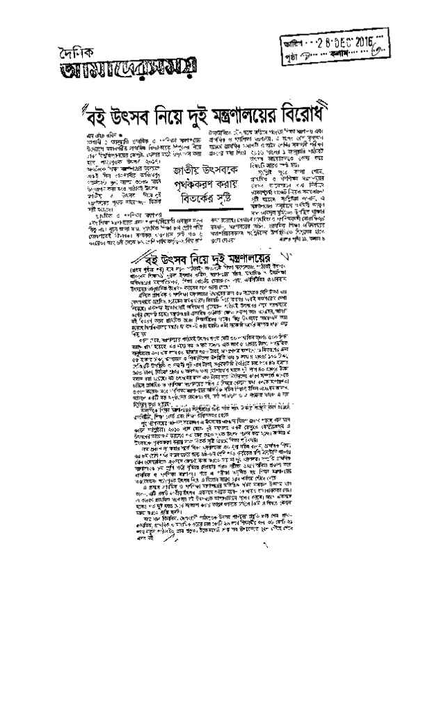 বই উৎসব নিয়ে দুই মন্ত্রনালয়ের বিরোধ Published on Newspaper দৈনিক আমাদের সময় Category Book Fair Download