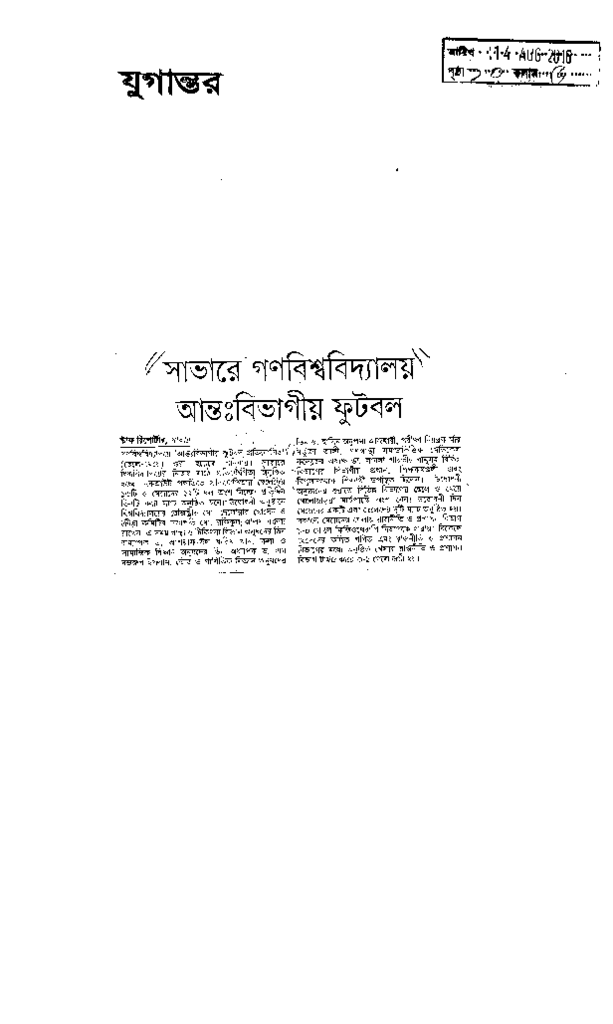 সাভারে গণবিশ্ববিদ্যালয় আন্তঃবিভাগীয় ফুটবল Published on Newspaper দৈনিক যুগান্তর Category Sports and Culture Download