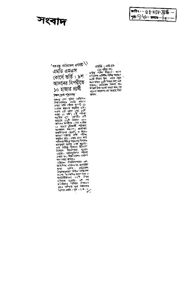 এমডি এমএস কোর্সে ভর্তি : ৯শ’ আসনের বিপরীতে ১০ হাজার প্রার্র্থী Published on Newspaper দৈনিক সংবাদ Category Professional Education Professional Education Medical Download
