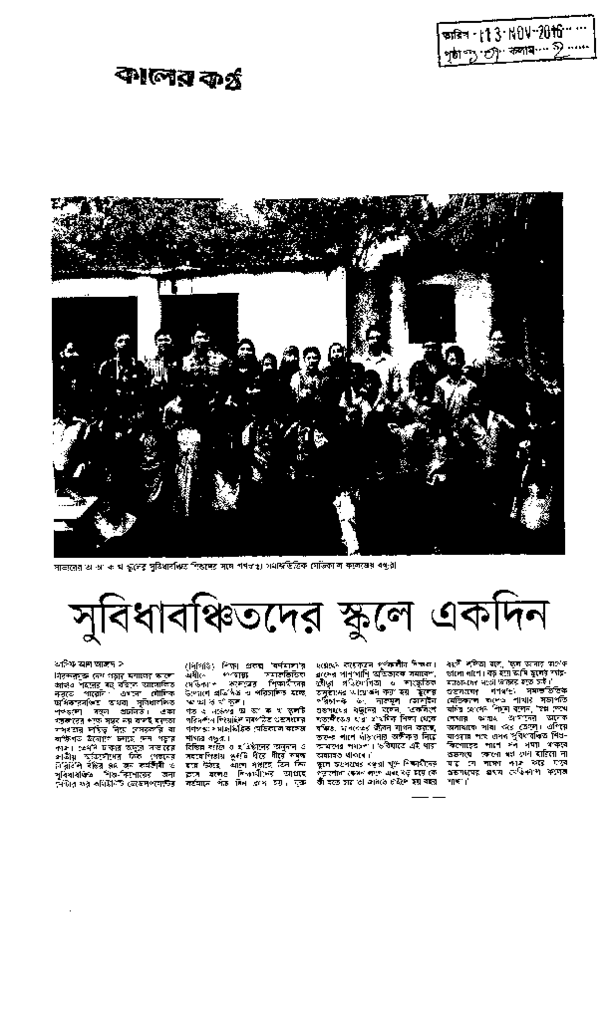 সুবিধাবঞ্চিতদের স্কুলে একদিন Published on Newspaper দৈনিক কালের কন্ঠ Category Child Education Download