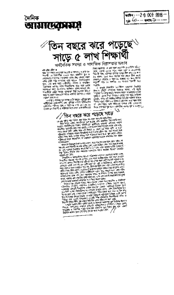 তিন বছরে ঝরে পড়েছে সাড়ে ৫ লাখ শিক্ষার্থী Published on Newspaper দৈনিক আমাদের সময় Category Child Education Download