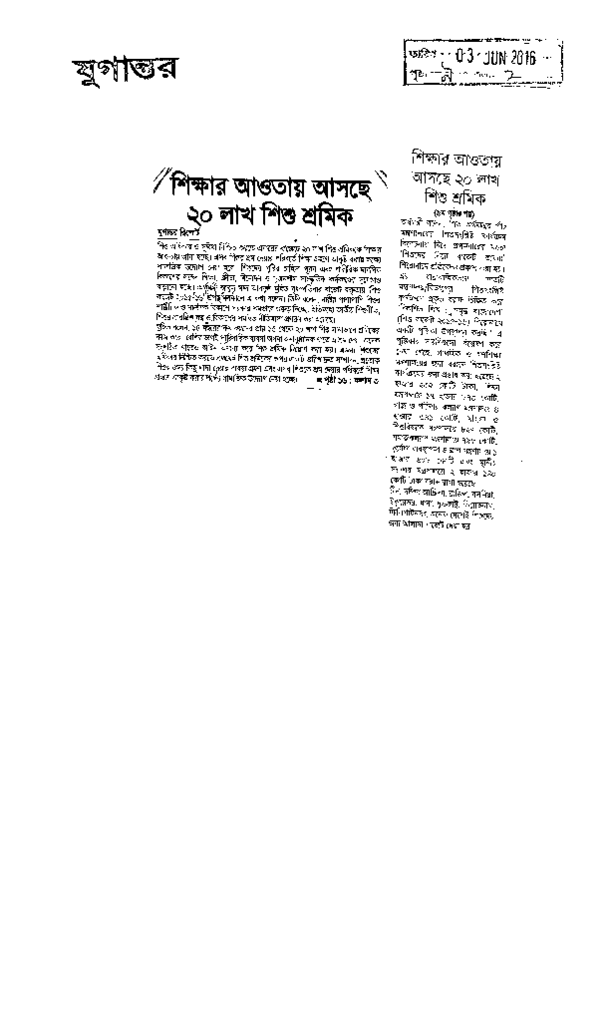 শিক্ষার আওতায় আসছে ২০ লাখ শিশু শ্রমিক Published on Newspaper দৈনিক যুগান্তর Category Child Education Download