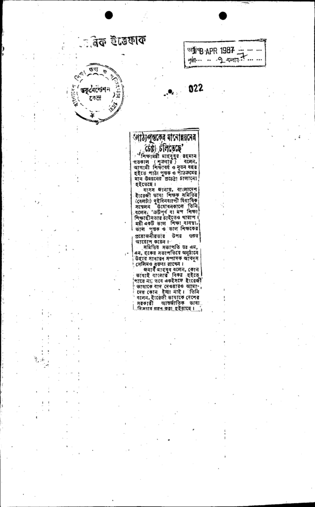 পাঠ্যপুস্তকের মনোয়ন্নয়নের চেষ্টা চলিতেছে’ Published on Newspaper দৈনিক ইত্তেফাক Category Personal Opinion / Discussion / Commentary Download
