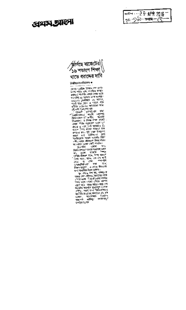 আসছে বাজেটের ১৬ শতাংশ শিক্ষা খাতে বরাদ্দের দাবি Published on Newspaper দৈনিক বাংলা Category Personal Opinion / Discussion / Commentary Download