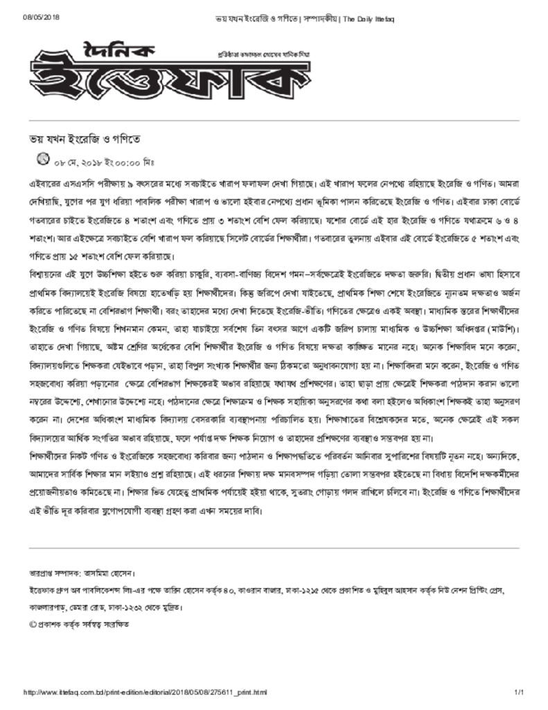 ভয় যখন ইংরেজি ও গণিতে _ সম্পাদকীয় _ The Daily Ittefaq Published on Newspaper দৈনিক ইত্তেফাক Category Personal Opinion / Discussion / Commentary Personal Speech / Discussion / Comentary Secondary and Higher Secondary Education Download