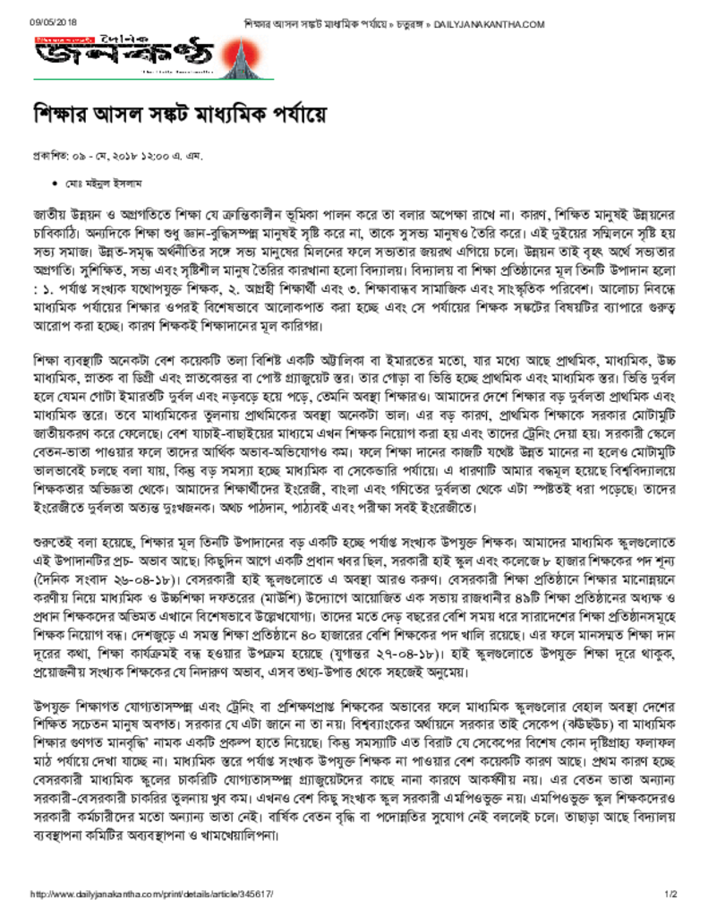 শিক্ষার আসল সঙ্কট মাধ্যমিক পর্যায়ে » চতুরঙ্গ » DAILYJANAKANTHA.COM Published on Newspaper দৈনিক জনকণ্ঠ Category Personal Opinion / Discussion / Commentary Personal Speech / Discussion / Comentary Secondary and Higher Secondary Education Download