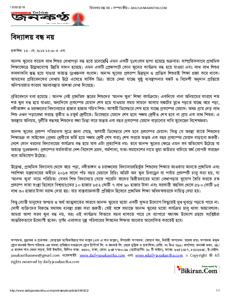 বিদ্যালয় বন্ধ নয় » সম্পাদকীয় » DAILYJANAKANTHA.COM Published on Newspaper দৈনিক জনকণ্ঠ Category Personal Opinion / Discussion / Commentary Personal Speech / Discussion / Comentary Secondary and Higher Secondary Education Download