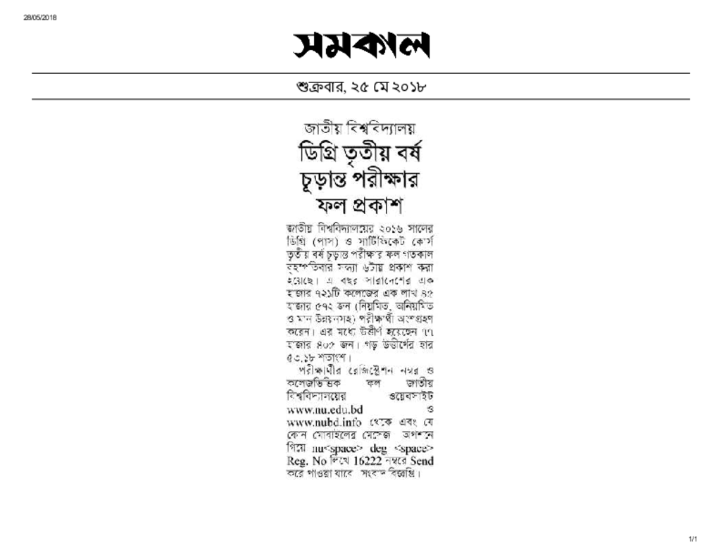 ডিগ্রি ৩য় বর্ষ চূড়ান্ত পরীক্ষার ফল প্রকাশ Published on Newspaper দৈনিক সমকাল Category Public Examination Public Examination Honors(Pass) Download