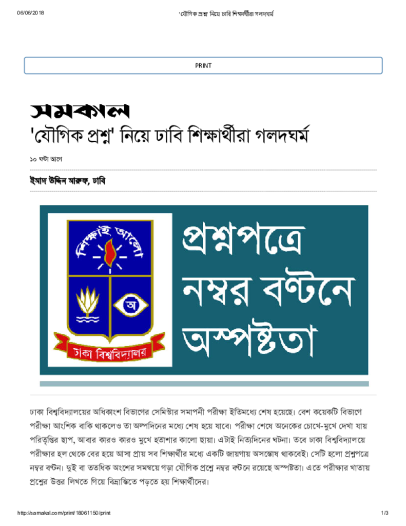 'যৌগিক প্রশ্ন' নিয়ে ঢাবি শিক্ষার্থীরা গলদঘর্ম Published on Newspaper দৈনিক সমকাল Category Public Examination General Education Higher Education Public Public Examination Higher Education Download