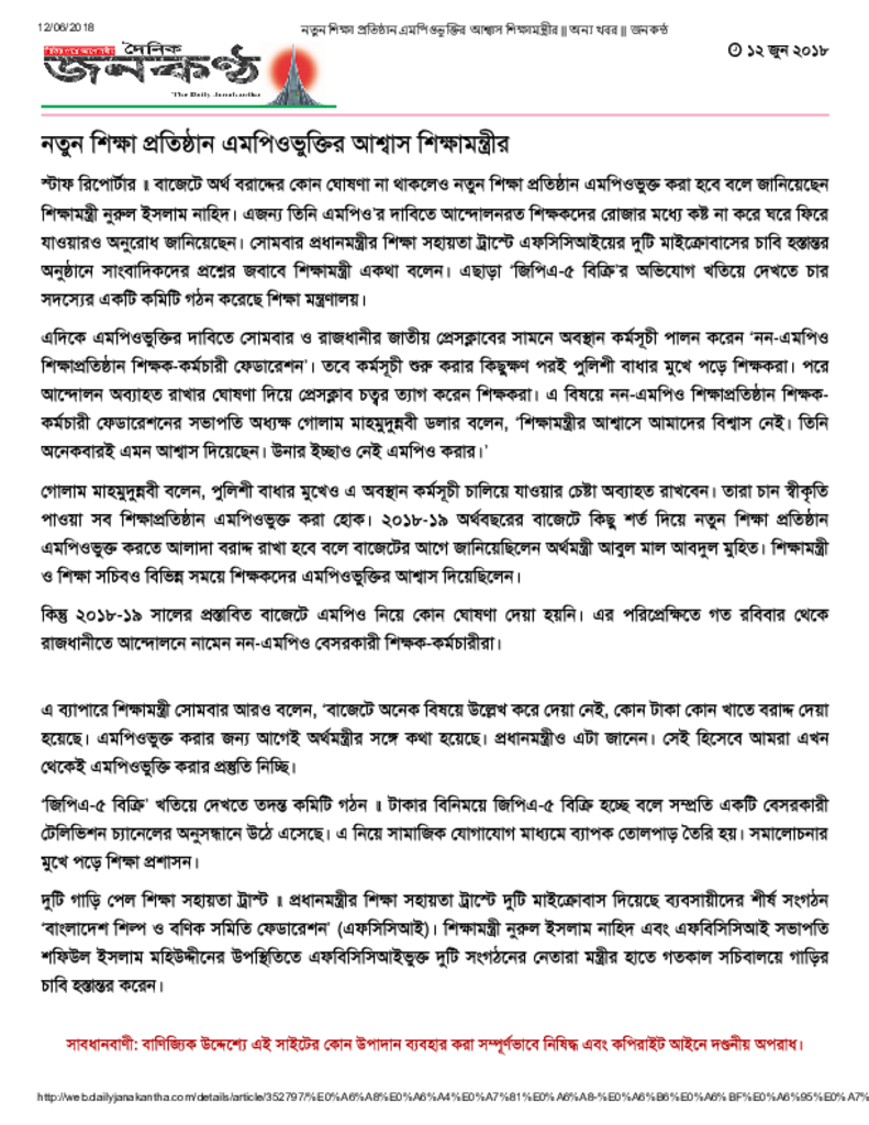 নতুন শিক্ষা প্রতিষ্ঠান এমপিওভুক্তির আশ্বাস শিক্ষামন্ত্রীর __ অন্য খবর __ জনকন্ঠ Published on Newspaper দৈনিক জনকণ্ঠ Category Personal Opinion / Discussion / Commentary Personal Speech / Discussion / Comentary Secondary and Higher Secondary Education Download