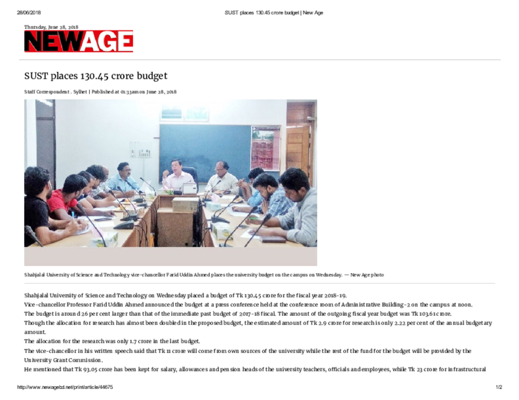 SUST places 130.45 crore budget Published on Newspaper New Age Category General Education General Education Higher Education Public Download