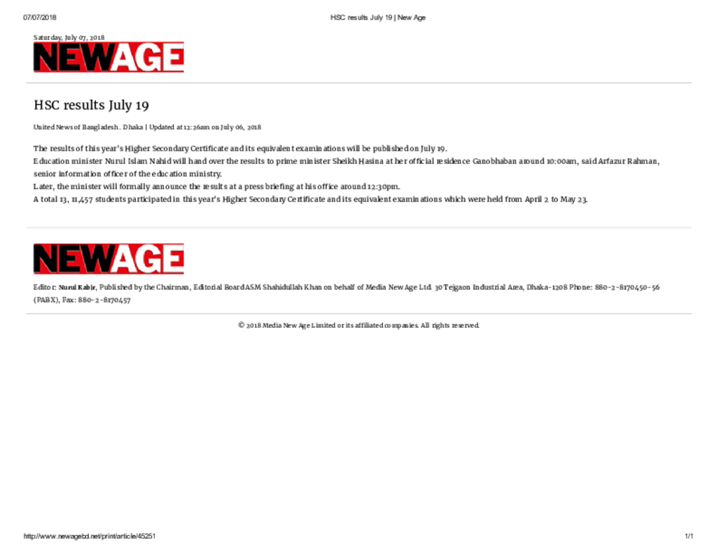 HSC results July 19 _ New Age Published on Newspaper New Age Category Public Examination Public Examination HSC Download