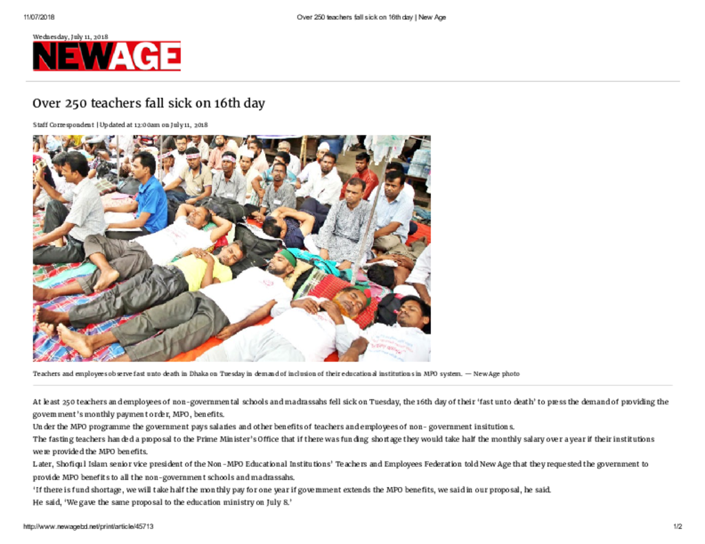 Over 250 teachers fall sick on 16th day _ New Age Published on Newspaper New Age Category Others Download